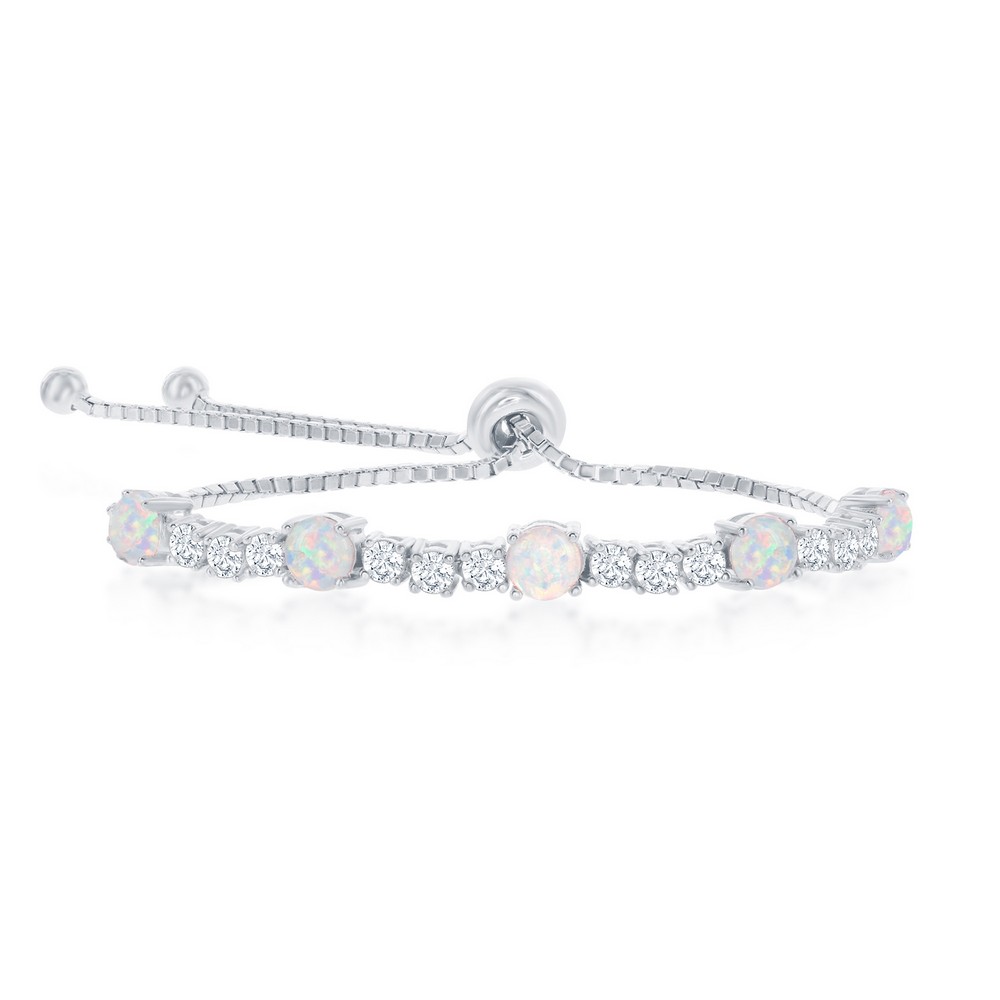 Alternating Four-Prong CZ & White Opal Adjustable Bolo Bracelet