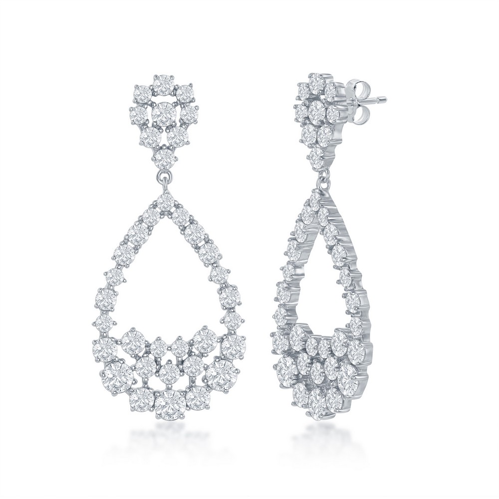 Chandelier earrings set with simulated diamonds on post earring set in sterling silver with rhodium plate