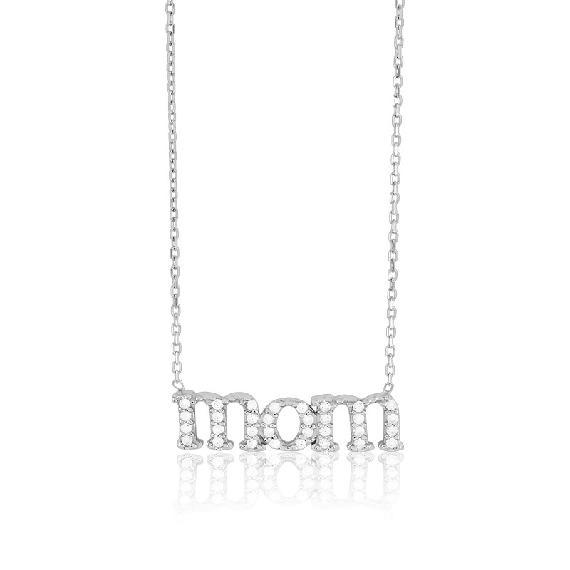 925 Sterling Silver Cubic Zirconia MOM Necklace – 16+2 Inch