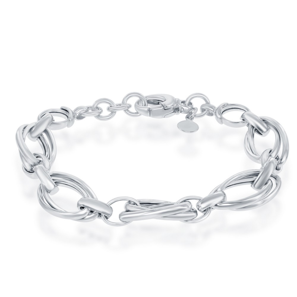 925 Sterling Silver Double Ovals High Polished Bracelet – 7.5+1 Inch