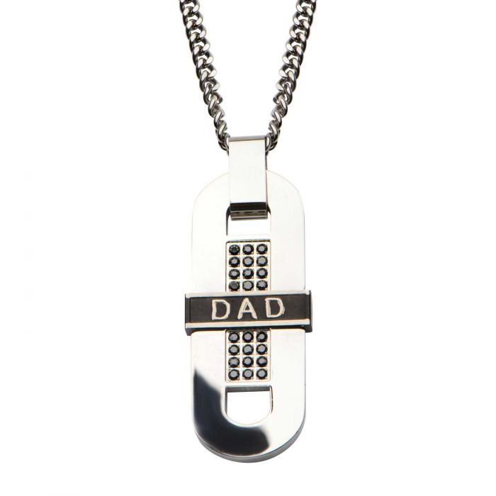 Engraved DAD & Black IP with Black CZ Dog Tag Pendant