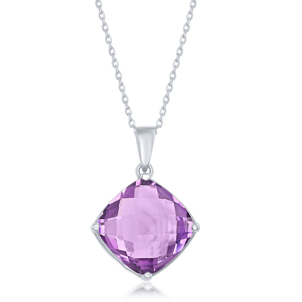 Four-Prong Amethyst Diamond-Shaped Necklace