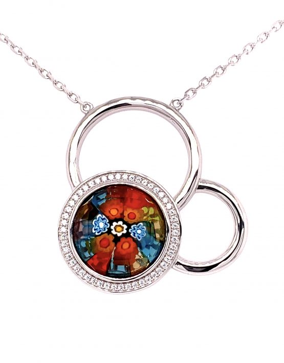 Sterling silver and Murano glass multi circle necklace with simulated diamonds