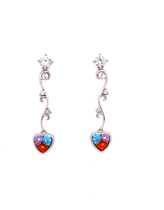 Murano glass heart shape vine earrings set in sterling silver with cubic zirconia stones
