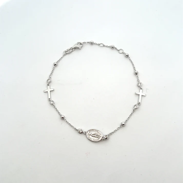 Sterling Silver Cross Bracelet with Miraculous Medal