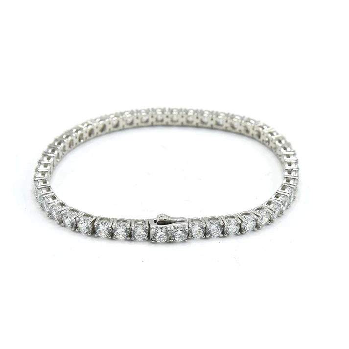 7″ sterling silver cubic zirconia tennis bracelet with spring lock clasp f4mm