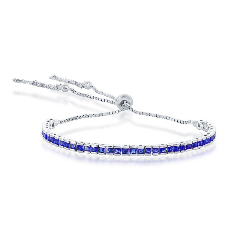 925 Sterling Silver Tennis Channel-Set CZ Adjustable Bolo Tassel Bracelet – Sapphire CZ